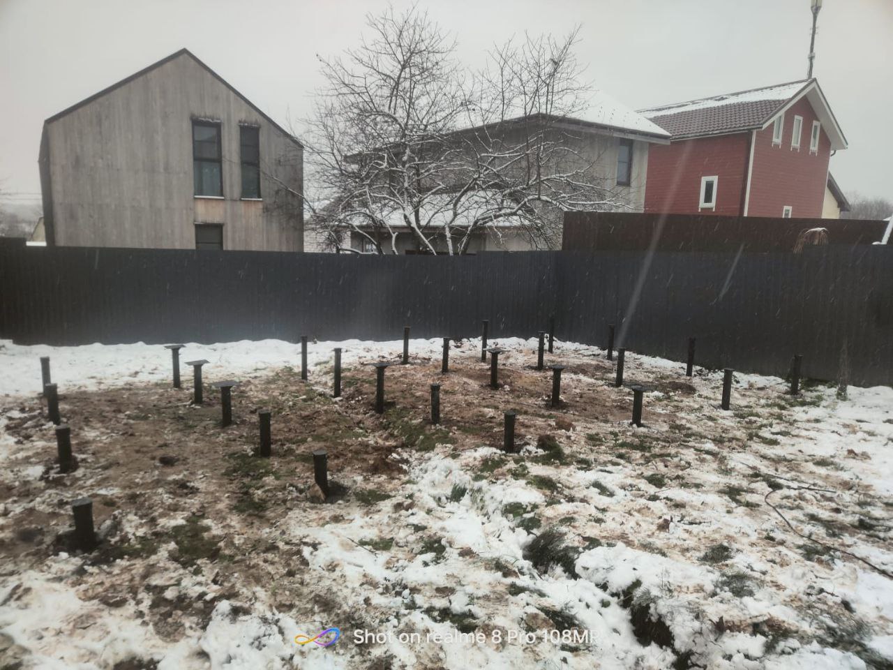 На объекте было установлено 27 винтовых свай. Каждая свая закручивалась по всем правилам технологии с использованием специализированного оборудования. Мы всегда соблюдаем строгие стандарты монтажа: сваи должны быть установлены на нужную глубину, а их вертикальность и горизонтальность проверялись на каждом этапе. Это гарантирует, что в дальнейшем фундамент будет устойчивым и надежным. -