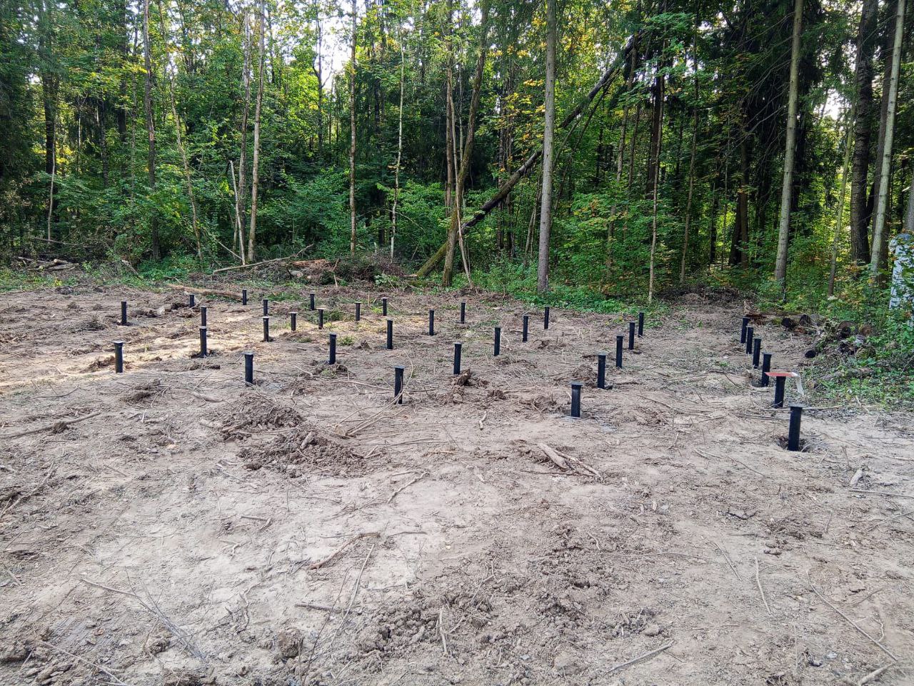 Свайно-винтовой фундамент из 34 свай, закручены до плотного грунта