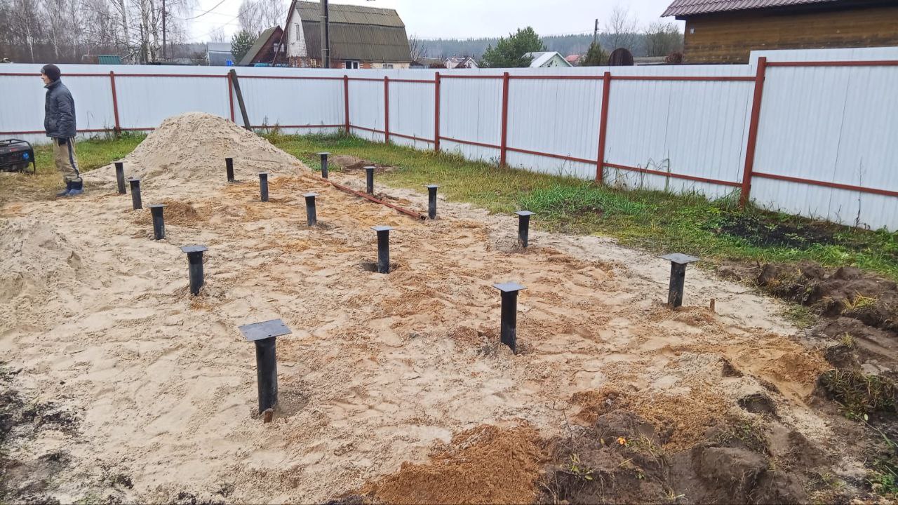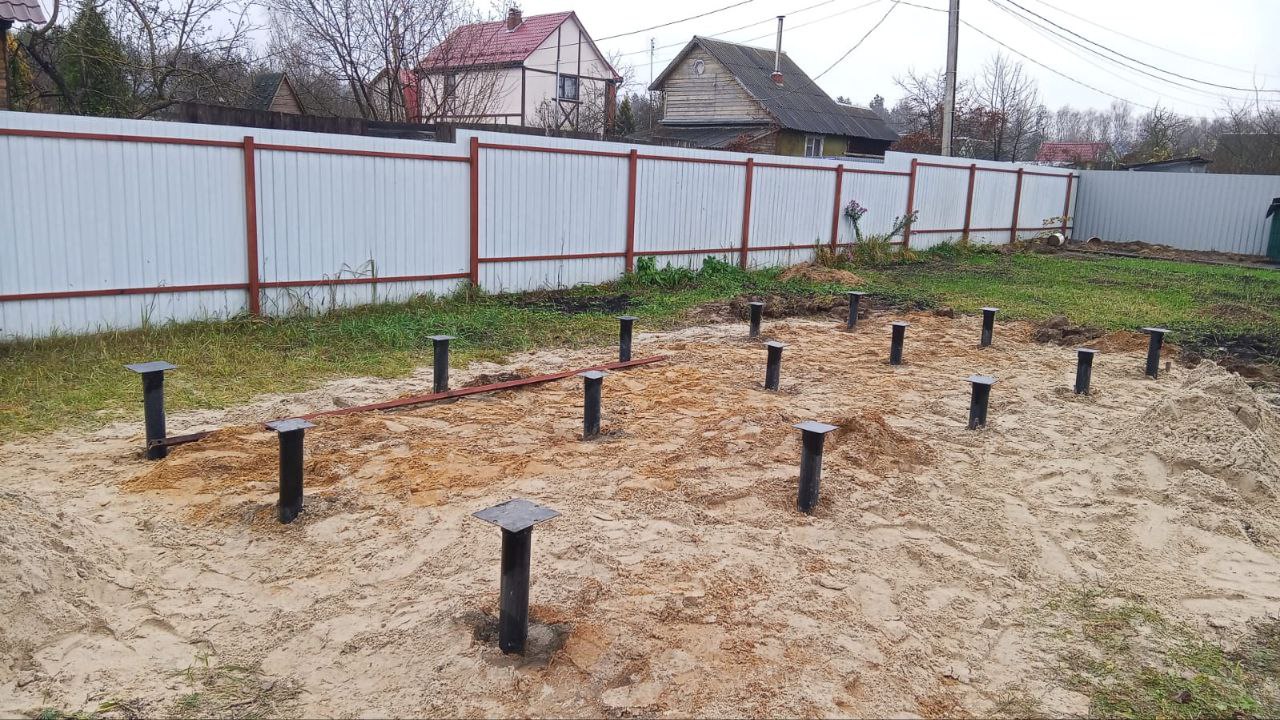 —Закрутили 15 винтовых свай для установки модульной бани