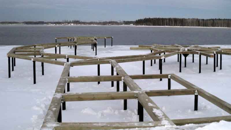 Монтаж готовых мостков, причалов и пирсов выполняется на винтовых сваях, зарекомендовавших себя, как самые надежные и долговечные опоры. Установка может производиться в любое время года.